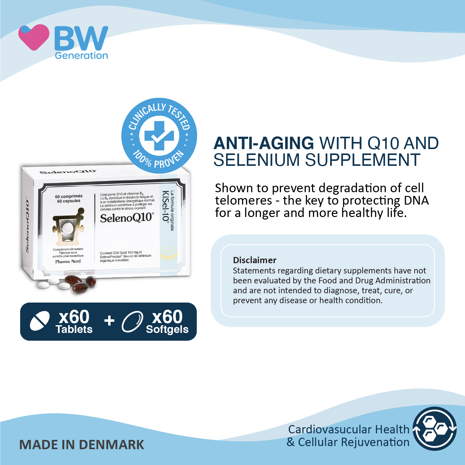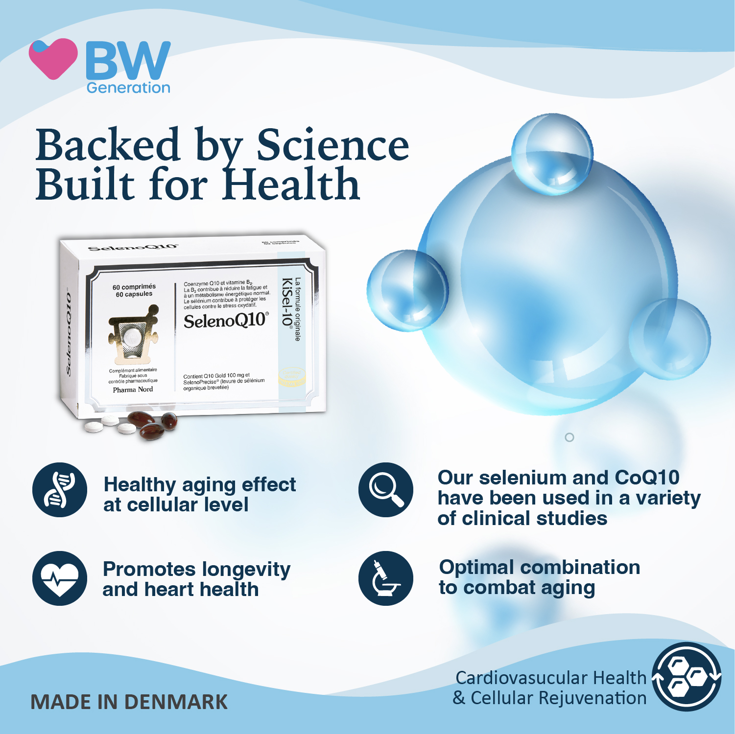 Bio-SelenoQ10™ is a powerful combination of Selenium and CoQ10, specially formulated to support your heart, energy, and healthy aging. Backed by the groundbreaking KiSel-10® study, this supplement has shown to improve heart health, reduce fatigue, and slow biological aging in older adults.