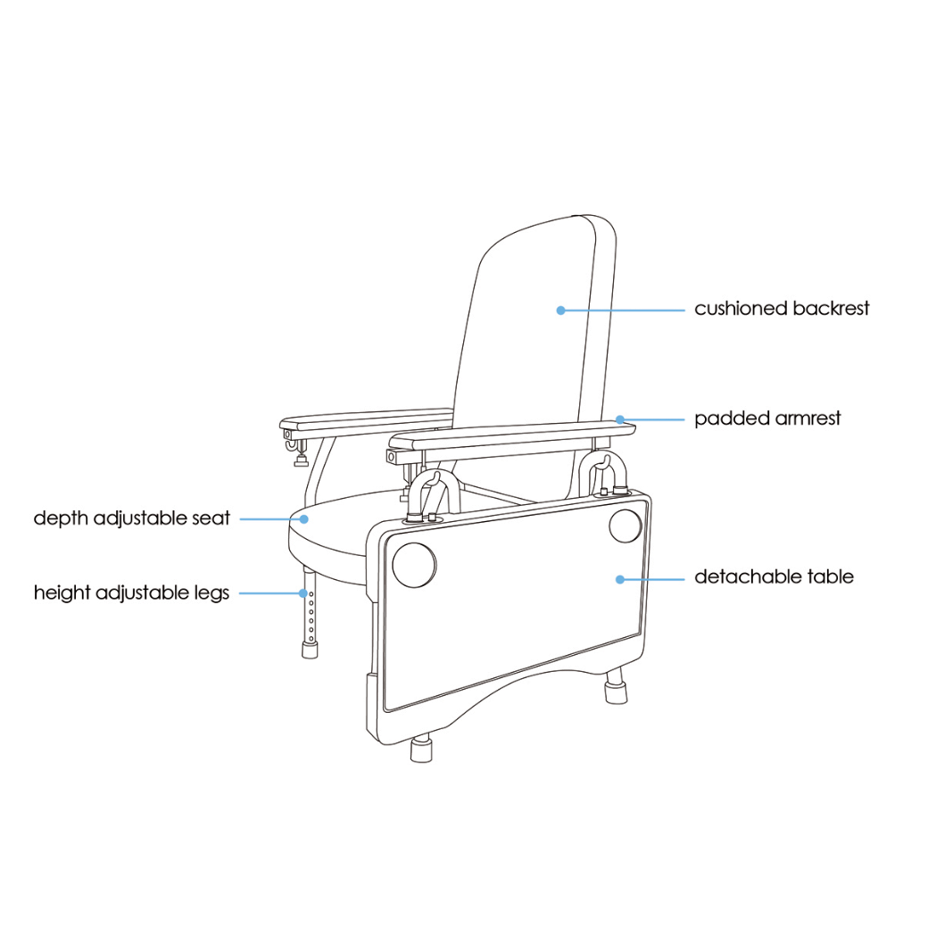 Bion Geriatric Chair Lite provides a light alternative and more comfortable sitting posture. With a luxurious amount of cushion that provides ample support to the spine and the neck. Also great for clinical environment such as dialysis and chemotherapy.