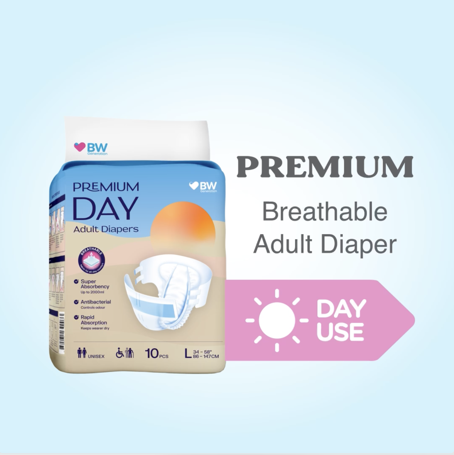 BW Premium Day Adult Diapers (Breathable)