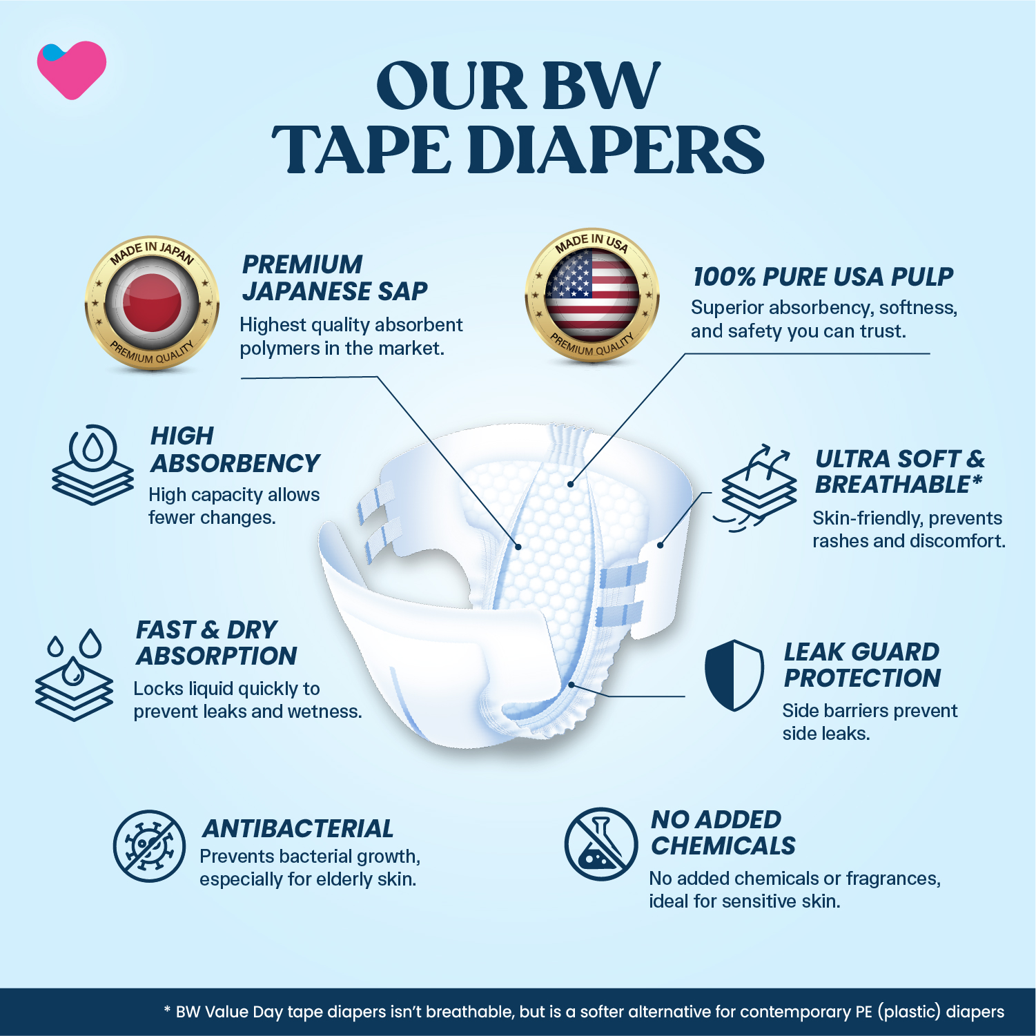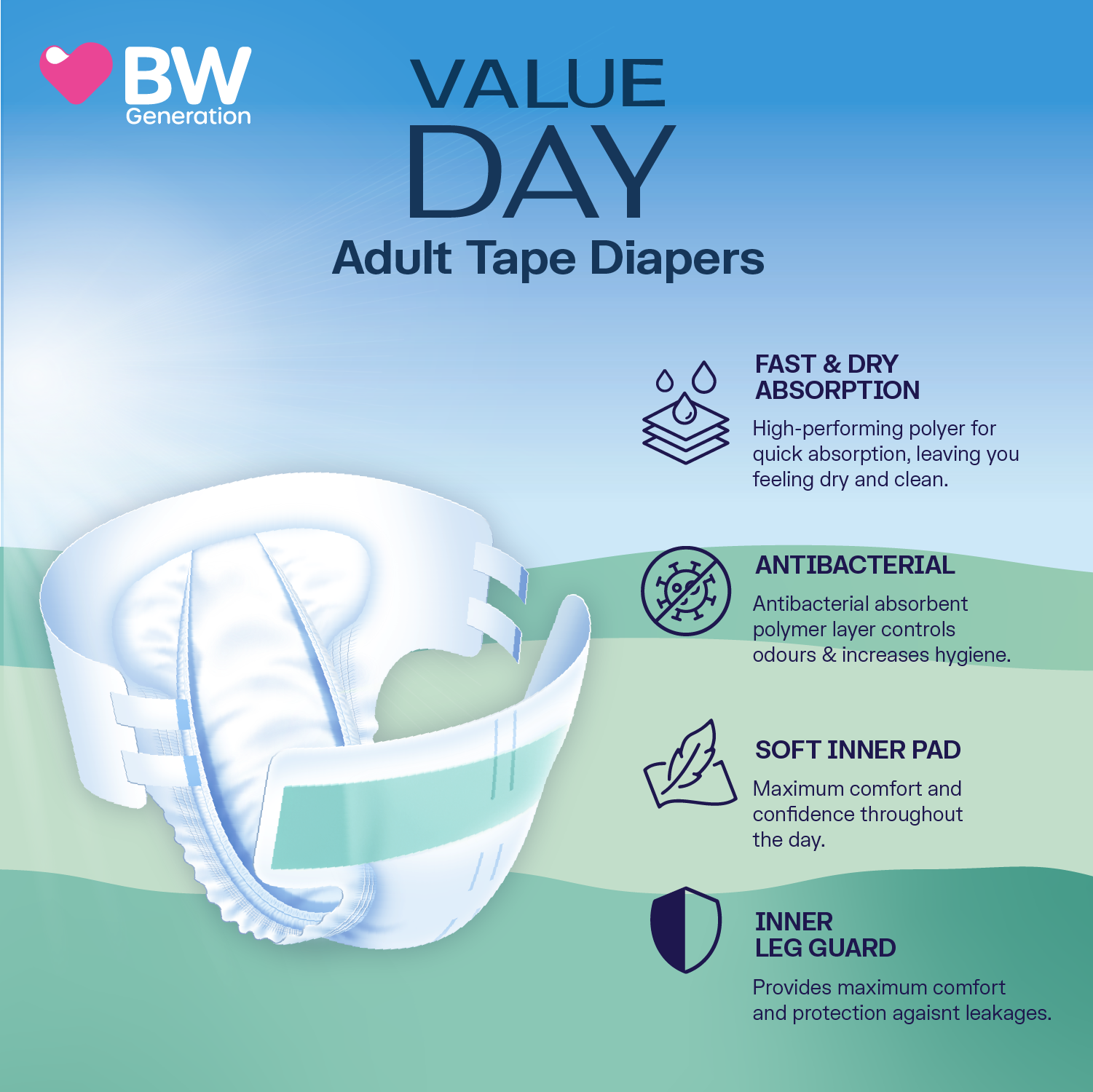 BW Value Day Tape Adult Diapers – S,M,L & XL