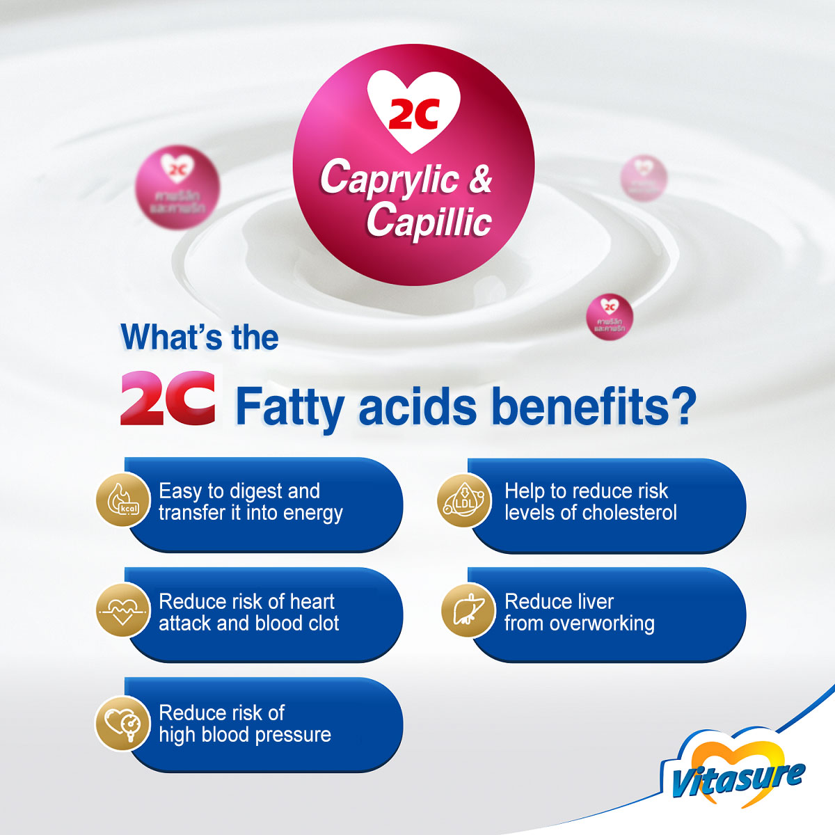 4. Vitasure has 2C; Capric & Caprylic are good fatty acid that help risk levels of cholesterol.